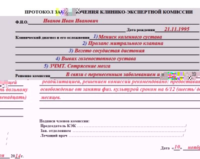 Медицинская справка от физкультуры, дающая право не посещать занятия целый год. Получить такую бумагу с печатью врачей самостоятельно сложно. Дело в том, что формирует документ не участковый педиатр или терапевт. Решение принимается коллегиально, на заседании врачебной клинико-экспертной комиссии.
