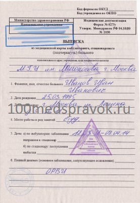 Купить медицинскую справку о болезни формы 027/у (выписка из истории болезни) с доставкой в любой город Купить медицинскую справку в Новосибирске | медицинские справки Новосибирск