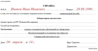 Перед тем как соглашаться на условия клиники, задайте интересующие вопросы специалистам. Медицинская справка в бассейн должна соответствовать всем правилам оформления, действующим на территории РФ.